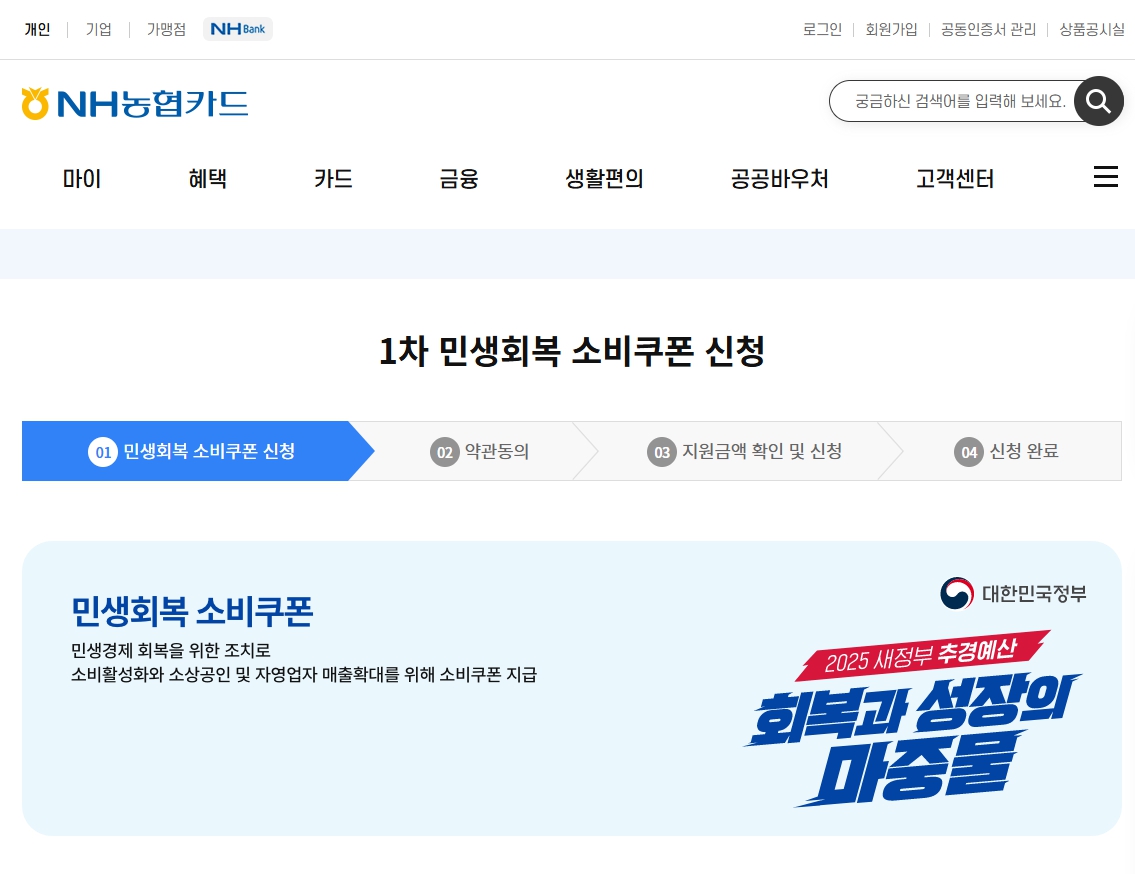 지금 바로 민생회복 소비쿠폰 카드사 신청하기