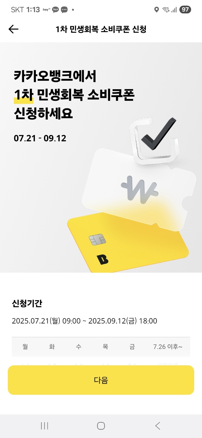 민생회복 소비쿠폰 카드사 신청 기회는 단 한 번