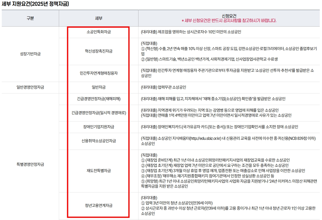- 업력 기준 (예: 창업자금은 1년 미만, 일반 자금은 6개월 이상)