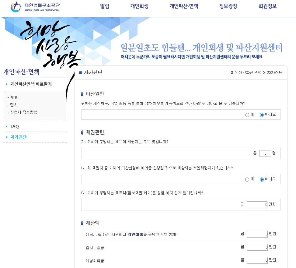 - 채무, 재산, 소득 자료 수집 및 신청서 작성