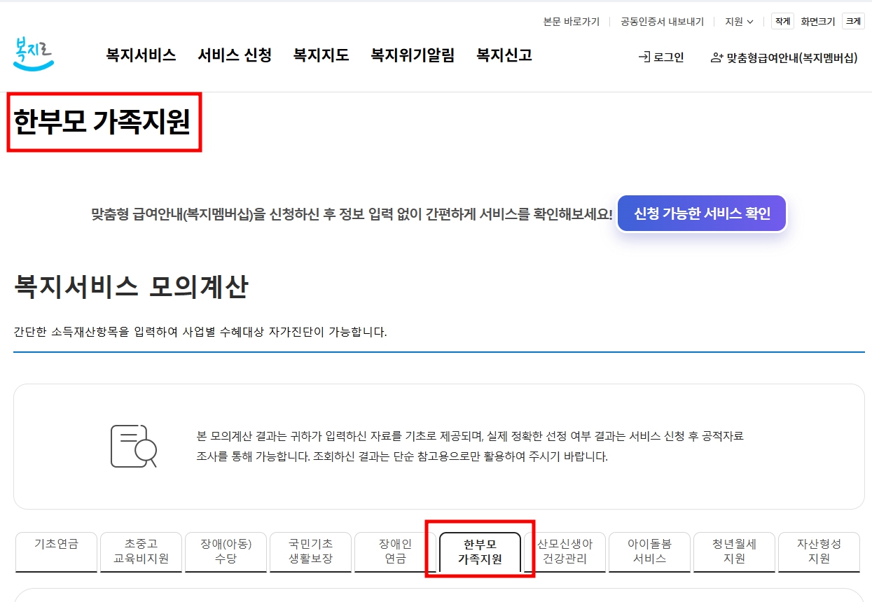 복지상담을 통해 한부모가정 지원혜택 + 자격조건 + 지원금 자격이 확인되었고,